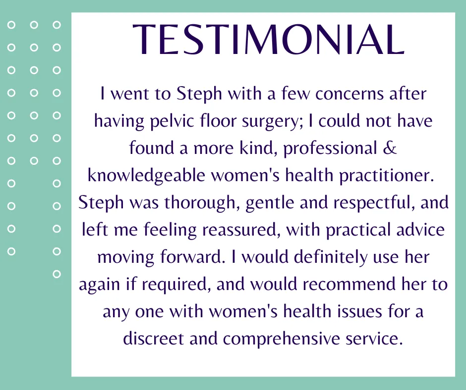 I can help and treat women 18 years old and above who are experiencing pelvic floor dysfunction. Pelvic floor dysfunction can occur at any age and the reason can be due to many factors or life experiences; pregnancy, childbirth, trauma/surgery and menopause are a few examples.